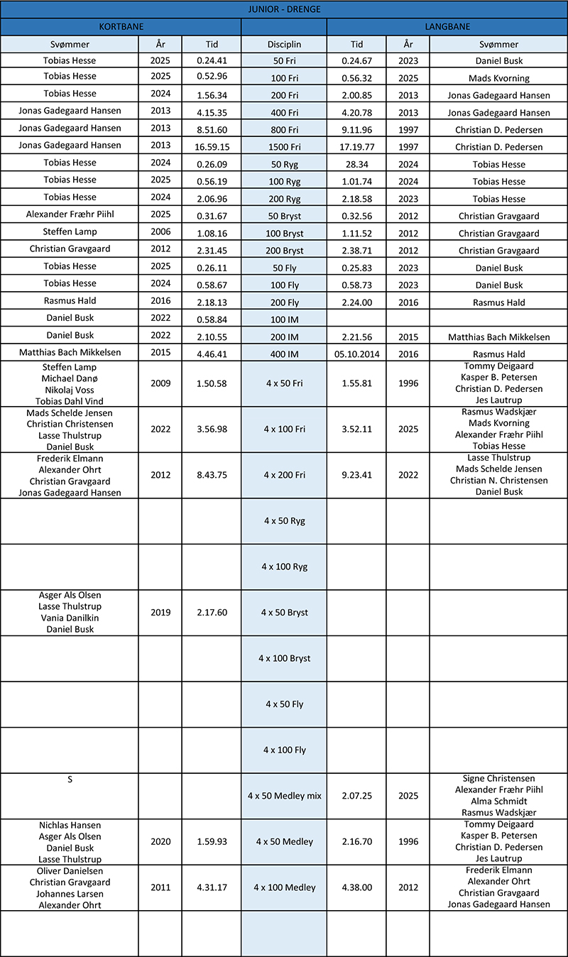 KLUBREKORDER / JUNIOR - DRENGE